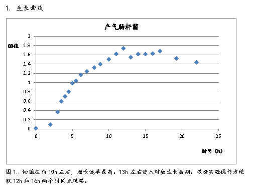 1、 將產(chǎn)氣腸桿菌菌種在5ml NA液體培養(yǎng)基中活化,活化的菌種接種于100ml NA液體培養(yǎng)基中,37℃搖床中培養(yǎng),接種后立即取0.1ml測(cè)量OD值,后連續(xù)22h取菌液測(cè)其OD值,并繪制實(shí)驗(yàn)菌株的生長(zhǎng)曲線。