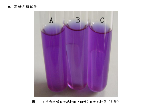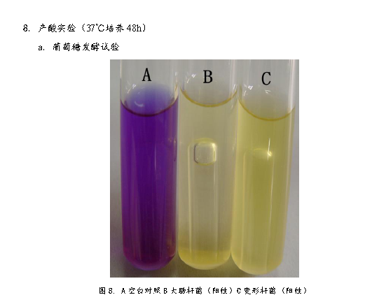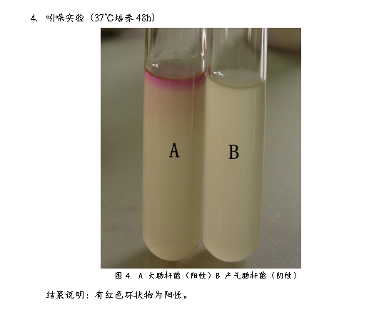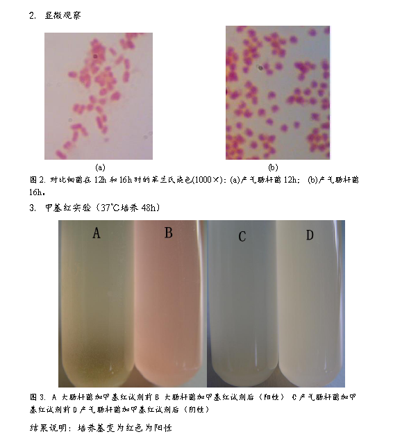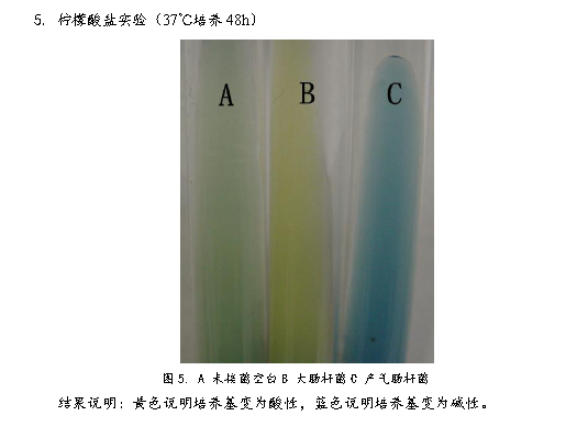 3、 將產(chǎn)氣腸桿菌接種到生理生化檢測(cè)培養(yǎng)基中,37℃培養(yǎng)48h。檢測(cè)菌種生理生化特性。