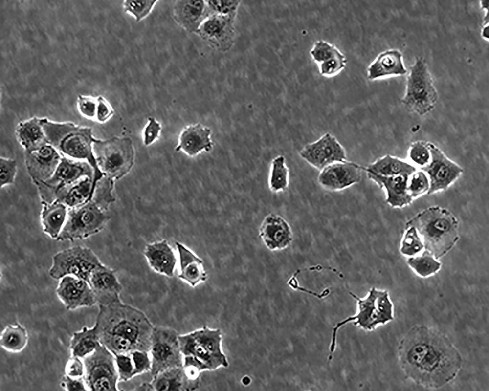 如果細胞密度達80%-90%,即可進行傳代培養。1. 棄去培養上清,用不含鈣、鎂離子的PBS潤洗細胞1-2次。2. 加2ml消化液(0.25%Trypsin-0.53mM EDTA)于培養瓶中,置于37℃培養箱中消化1-2分鐘,然后在顯微鏡下觀察細胞消化情況,若細胞大部分變圓并脫落,迅速拿回操作臺,輕敲幾下培養瓶后加少量培養基終止消化。3. 按6-8ml/瓶補加培養基,輕輕打勻后吸出,在1000RPM條件下離心4分鐘,棄去上清液,補加1-2mL培養液后吹勻。4. 將細胞懸液按1:2到1:5的比例分到新的含8ml培養基的新皿中或者瓶中 |