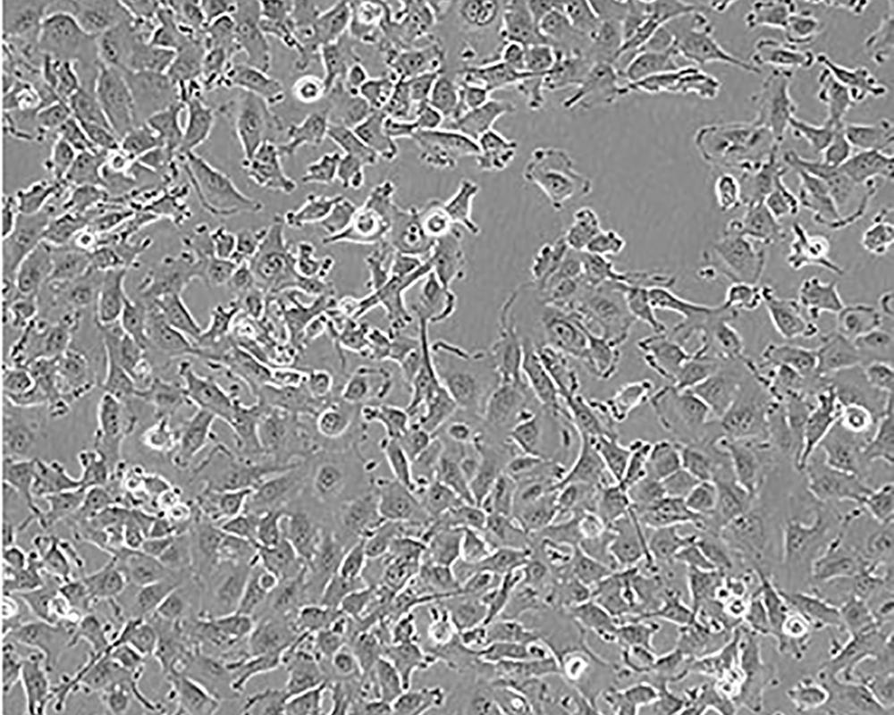 如果細(xì)胞密度達(dá)80%-90%,即可進(jìn)行傳代培養(yǎng)。1. 棄去培養(yǎng)上清,用不含鈣、鎂離子的PBS潤洗細(xì)胞1-2次。2. 加2ml消化液(0.25%Trypsin-0.53mM EDTA)于培養(yǎng)瓶中,置于37℃培養(yǎng)箱中消化1-2分鐘,然后在顯微鏡下觀察細(xì)胞消化情況,若細(xì)胞大部分變圓并脫落,迅速拿回操作臺,輕敲幾下培養(yǎng)瓶后加少量培養(yǎng)基終止消化。3. 按6-8ml/瓶補(bǔ)加培養(yǎng)基,輕輕打勻后吸出,在1000RPM條件下離心4分鐘,棄去上清液,補(bǔ)加1-2mL培養(yǎng)液后吹勻。4. 將細(xì)胞懸液按1:2到1:5的比例分到新的含8ml培養(yǎng)基的新皿中或者瓶中 |