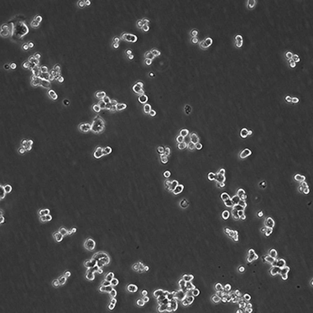 如果細胞密度達80%-90%,即可進行傳代培養。1. 棄去培養上清,用不含鈣、鎂離子的PBS潤洗細胞1-2次。2. 加2ml消化液(0.25%Trypsin-0.53mM EDTA)于培養瓶中,置于37℃培養箱中消化1-2分鐘,然后在顯微鏡下觀察細胞消化情況,若細胞大部分變圓并脫落,迅速拿回操作臺,輕敲幾下培養瓶后加少量培養基終止消化。3. 按6-8ml/瓶補加培養基,輕輕打勻后吸出,在1000RPM條件下離心4分鐘,棄去上清液,補加1-2mL培養液后吹勻。4. 將細胞懸液按1:2到1:5的比例分到新的含8ml培養基的新皿中或者瓶中。 |