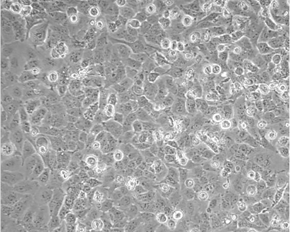 細胞描述 該細胞源于一位51歲患有非小細胞肺癌黑人男性患者的治療前的腫瘤組織,表達C-myc、L-myc、v-src、v-abl、v-erb B、c-raf 1、Ha-ras、Ki-ras、N-ras RNAs;該細胞攜帶K-ras 12突變;p53基因246位密碼子突變ATC→ATG;表達PDGF A和B鏈的異源mRNA;表達TGFα、TGFβ和EGFR;角蛋白 5、8和18陽性,波形蛋白陽性,神經絲蛋白陰性,左旋多巴脫氫酶陰性;據報道,在軟瓊脂中該細胞形成克隆的效率為9.7%。