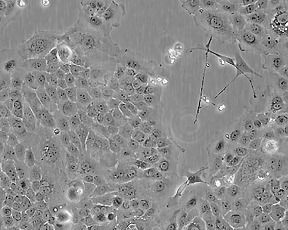 如果細胞密度達80%-90%,即可進行傳代培養(yǎng)。1. 棄去培養(yǎng)上清,用不含鈣、鎂離子的PBS潤洗細胞1-2次。2. 加2ml消化液(0.25%Trypsin-0.53mM EDTA)于培養(yǎng)瓶中,置于37℃培養(yǎng)箱中消化1-2分鐘,然后在顯微鏡下觀察細胞消化情況,若細胞大部分變圓并脫落,迅速拿回操作臺,輕敲幾下培養(yǎng)瓶后加少量培養(yǎng)基終止消化。3. 按6-8ml/瓶補加培養(yǎng)基,輕輕打勻后吸出,在1000RPM條件下離心4分鐘,棄去上清液,補加1-2mL培養(yǎng)液后吹勻。4. 將細胞懸液按1:2到1:5的比例分到新的含8ml培養(yǎng)基的新皿中或者瓶中 |